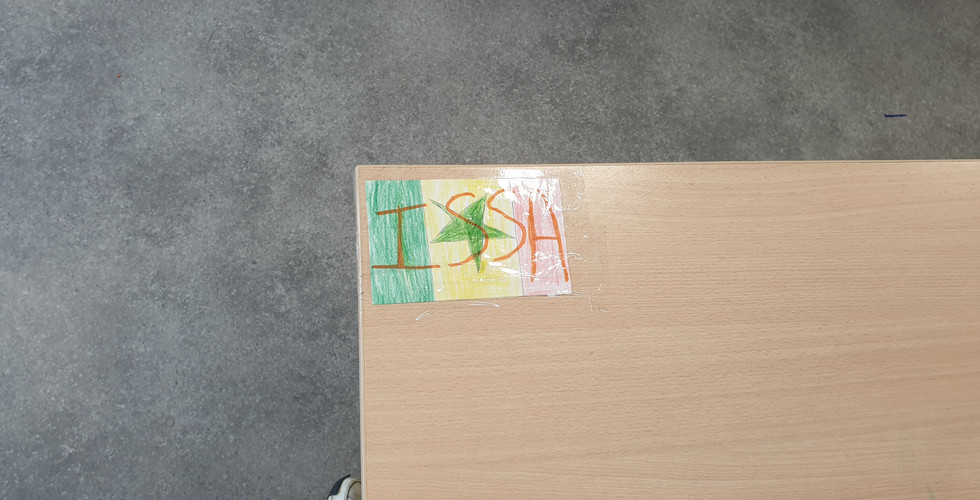 Les élèves de la classe de 5ièmeA, accompagnés de leur professeur principal M. Manioc, ont eux-même adapté la classe B23 afin de respecter le protocole sanitaire. Ils ont dessiné leurs étiquettes pour les tables individuelles, des flèches pour marquer le sens de circulation dans la salle et, des affiches rappelant les gestes barrière.